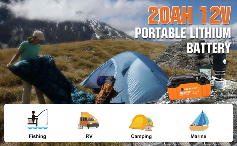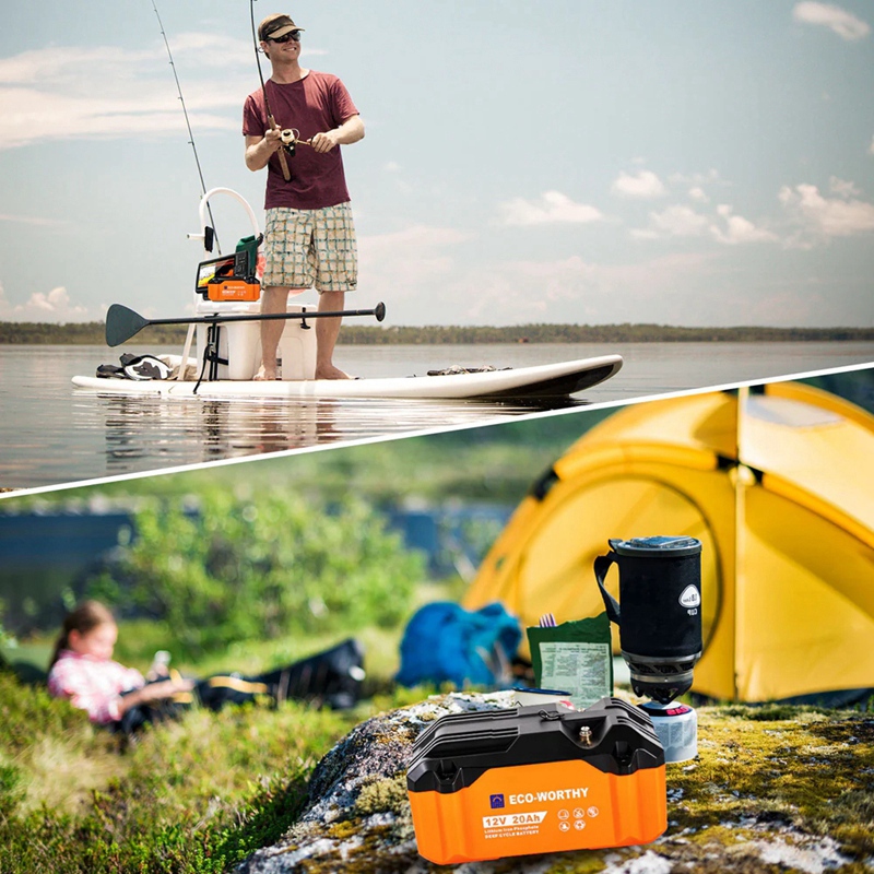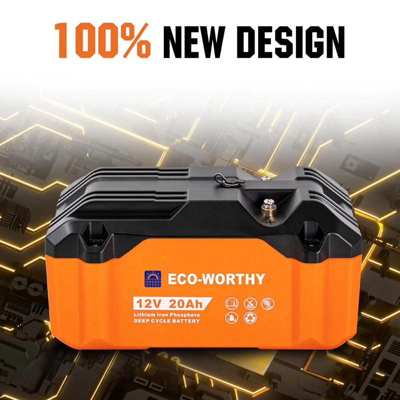 Overcharge/Over-discharge/Over-temperatureECO-WORTHY 12V 20Ah Portable LiFePO4 Deep Cycle Rechargeable Battery is suitable for various outdoor applications: fishfinder, trolling motor, camping, RV, boat, ect.