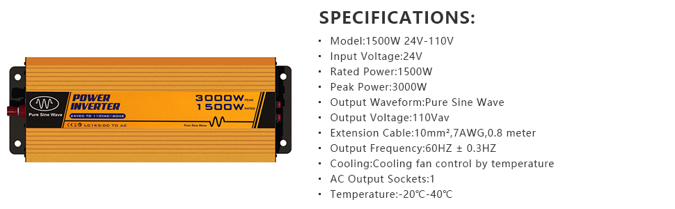 With the pure sine wave inverter, DC 24V can be transformed into AC 110V and prevents appliances from overload,overcurrent etc. You can easily check the battery remain voltage and master your electricity duration. It's suitable for all appliances such as microwave, coffee maker and refrigerator.