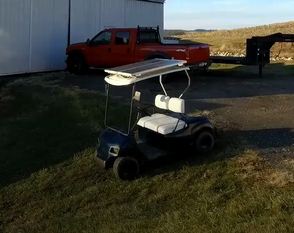 Buy kits containing solar panels for golf carts to add to the roof you have