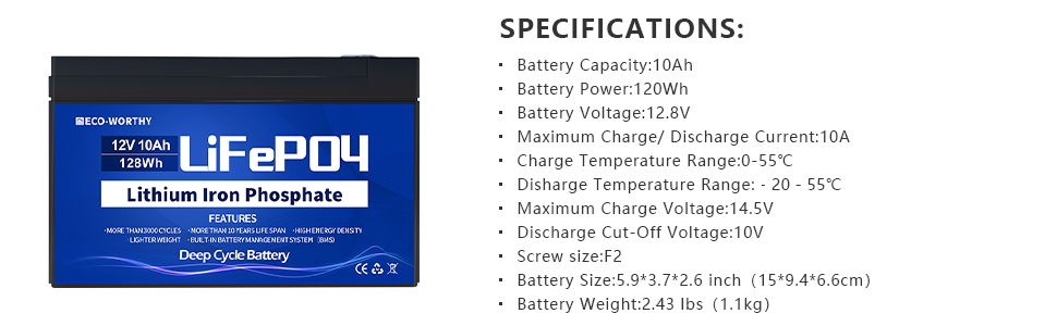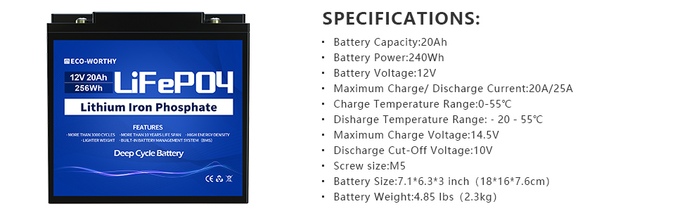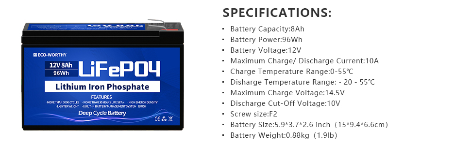 ECO-WORTHY  High performance series lithium battery can offer up to 10,000 error-free cycles. It can also offer numerous advantages over flooded and sealed lead acid batteries when used in renewable energy systems. Longer life, wider temperature range, true deep cycling, and safety are just the beginning.