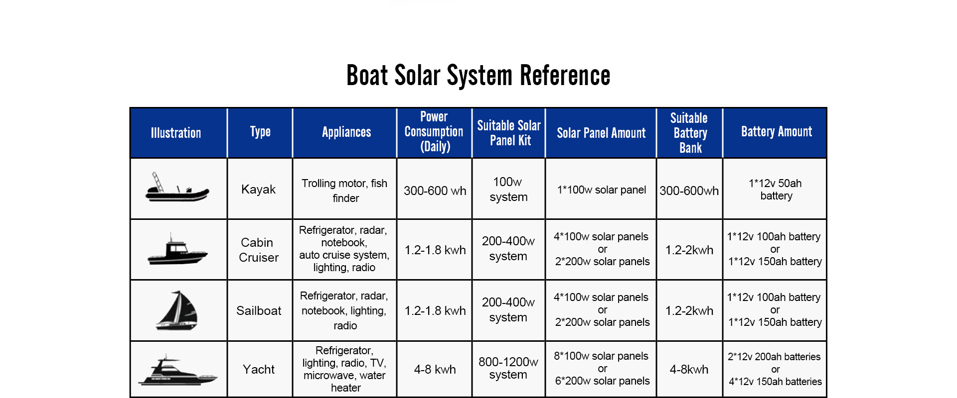 Marine Battey and Solar Power Kit for Yacht