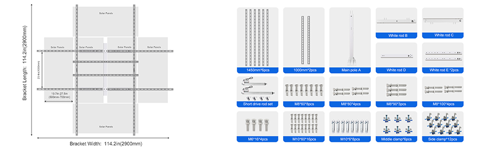 The cross rod length: 114.2in(2900mm)