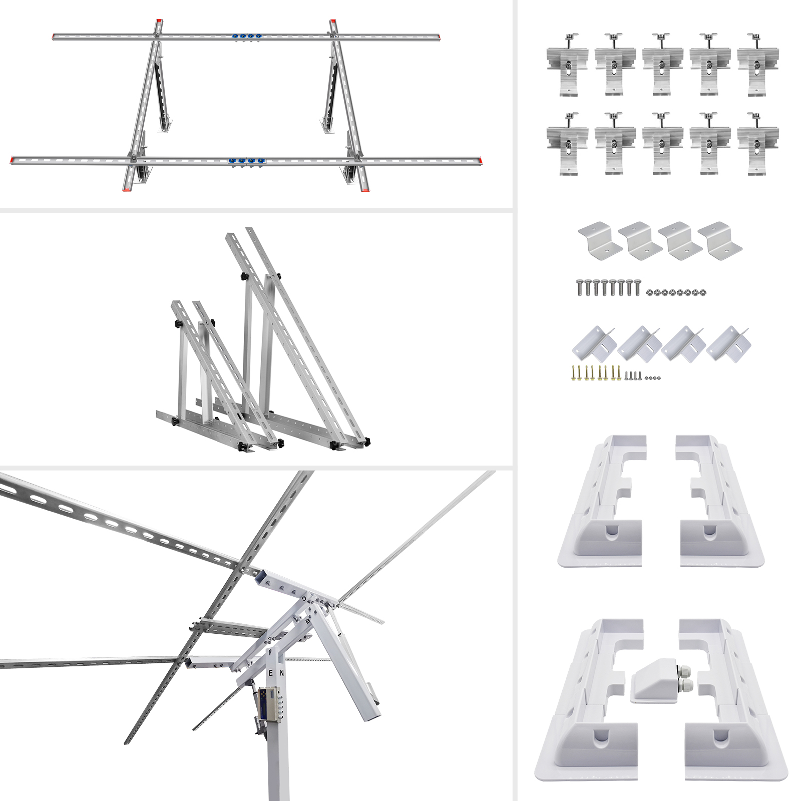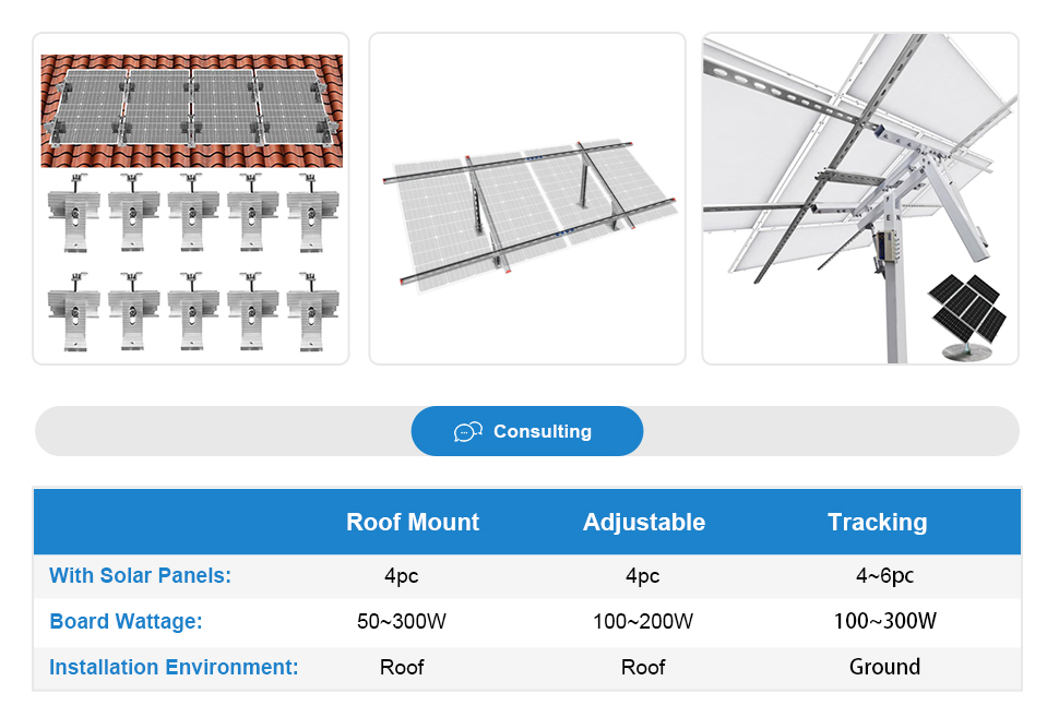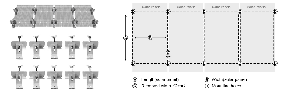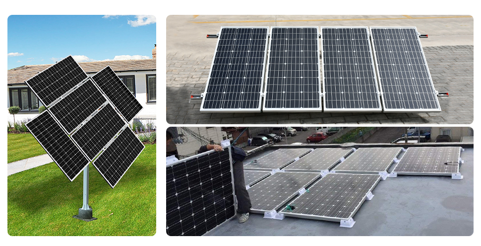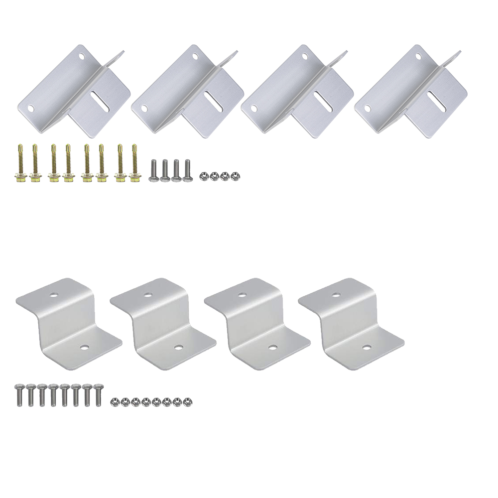 ECO-WORTHY Adjustable/Roof/RV/Tracking Multi-Piece Solar Panel Mounting Brackets has the capability to fit 1-4 pieces of different size ECO-WORTHY panels or other brands standard panels. It's ideal for larger installations, such as ground, flat roof, cabins and backyard sheds. Anywhere roof mounting is not a possibility, this solar panel mount can be applied.