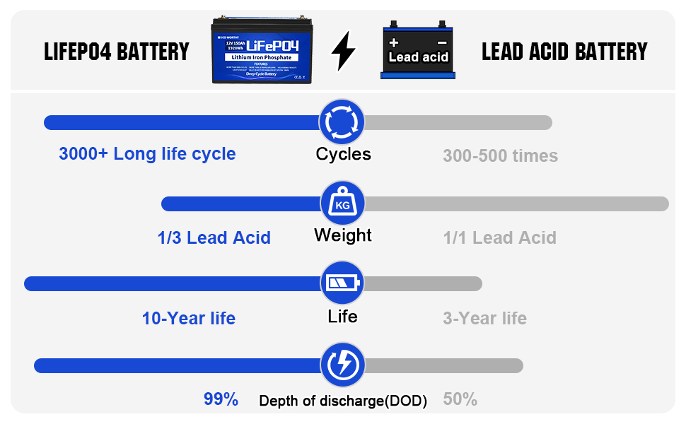 Built-in BMS protects the battery from overcharge, deep discharge, overload, overheating, and short circuit and keeps the battery cell balance.